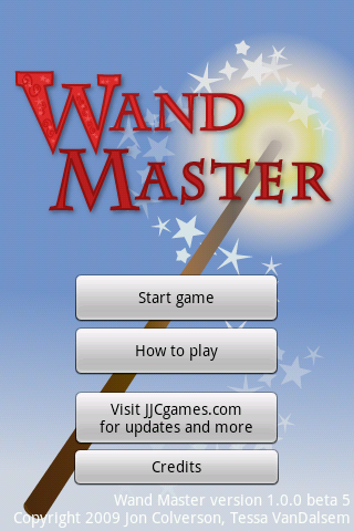 The game is available at the Android Market. If you're viewing this page from your phone then you can click here to go the Wand Master Market entry. The game is for sale right now in many countries, but if it's not available for you yet, please see the bottom of this page for the various ways you can sign up for updates from us.
